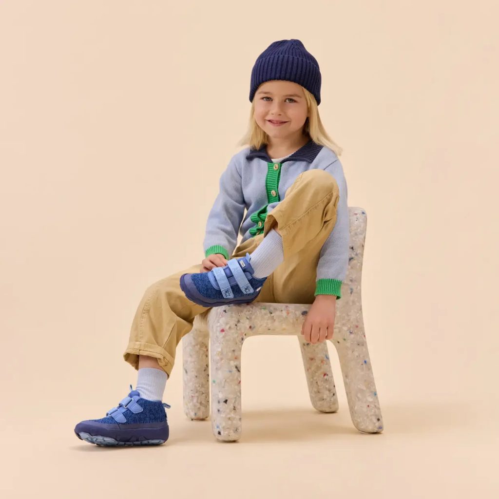 Children's year-round barefoot shoes with ergonomic shape made from recycled Bluesign polyester. These colourful knitted shoes are waterproof and breathable thanks to the AffenTex membrane, ensuring that children's feet stay dry and warm regardless of the weather.