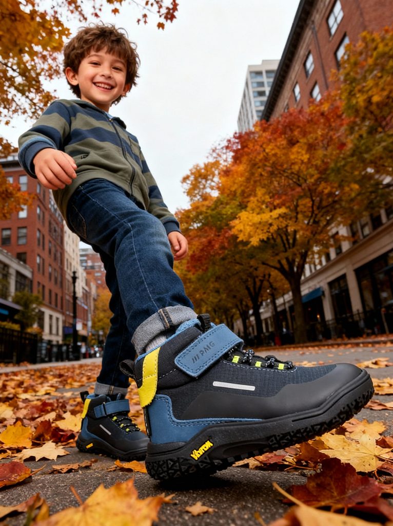 Anatomically shaped insole made from textile and EVA foam supports healthy development of children's feet. Premium Vibram sole provides lightness, grip and flexibility.