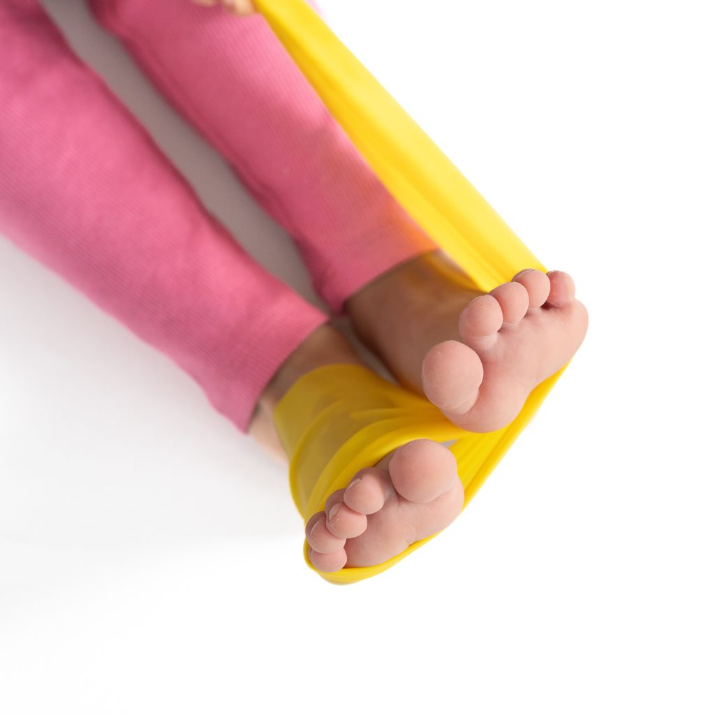 The cards are designed for children from 3 years old (more sensitive children from 2 years) and the exercises are also suitable for adults. For home practice you will need the following exercise equipment: resistance band 120-150 cm long, 2 rehab blocks (foam/cork), "spiky ball" - massage ball with diameter 7-10 cm, elastic inflatable ball - overball with diameter 20-30 cm and household items (sock, coin, spoon...).