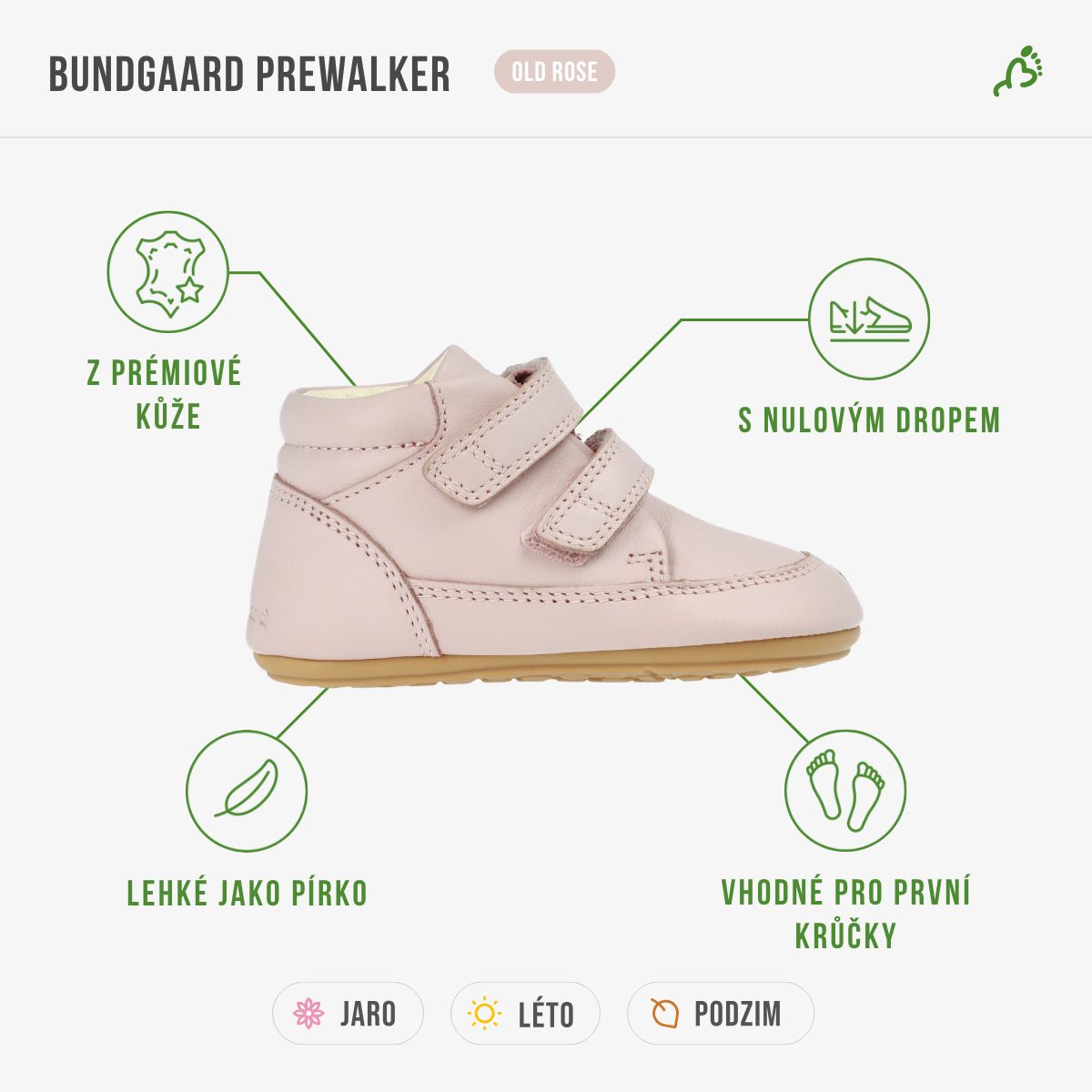 Dopřejte svým dětem ty nejlepší podmínky pro první objevování světa v modelu Prewalker od značky BUNDGAARD. Botičky jsou ideální volbou pro začínající i pokročilé chodce. Zesílená vrstva v přední části zajistí ochranu chodidel a díky suchým zipům se krásně utahují kolem kotníku.