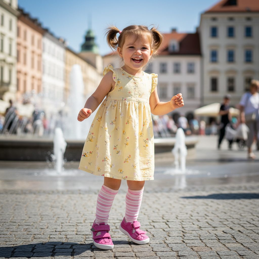 Comfortable children's barefoot sandals made of quality brushed leather. They fasten easily with two Velcro fasteners, which have a reflective element for better visibility. They are extremely light and soft. The flexible sole adapts to the movement as much as possible so the foot can develop properly.