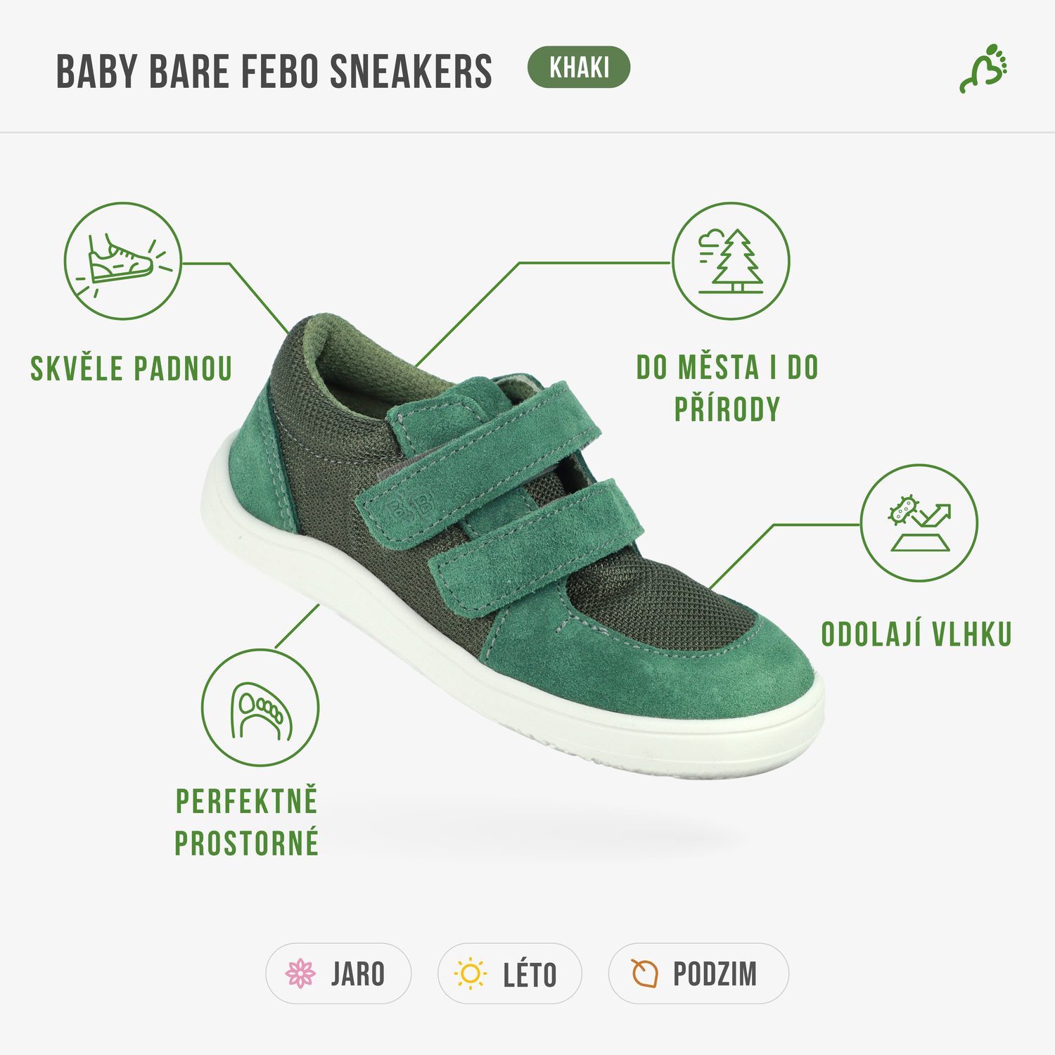 Barefoot trainers from Slovak brand Baby Bare Shoes are ideal children's shoes for everyday wear thanks to their anatomical shape. The upper is made from breathable water-repellent fabric combined with quality leather. Velcro fastening makes putting them on very easy.