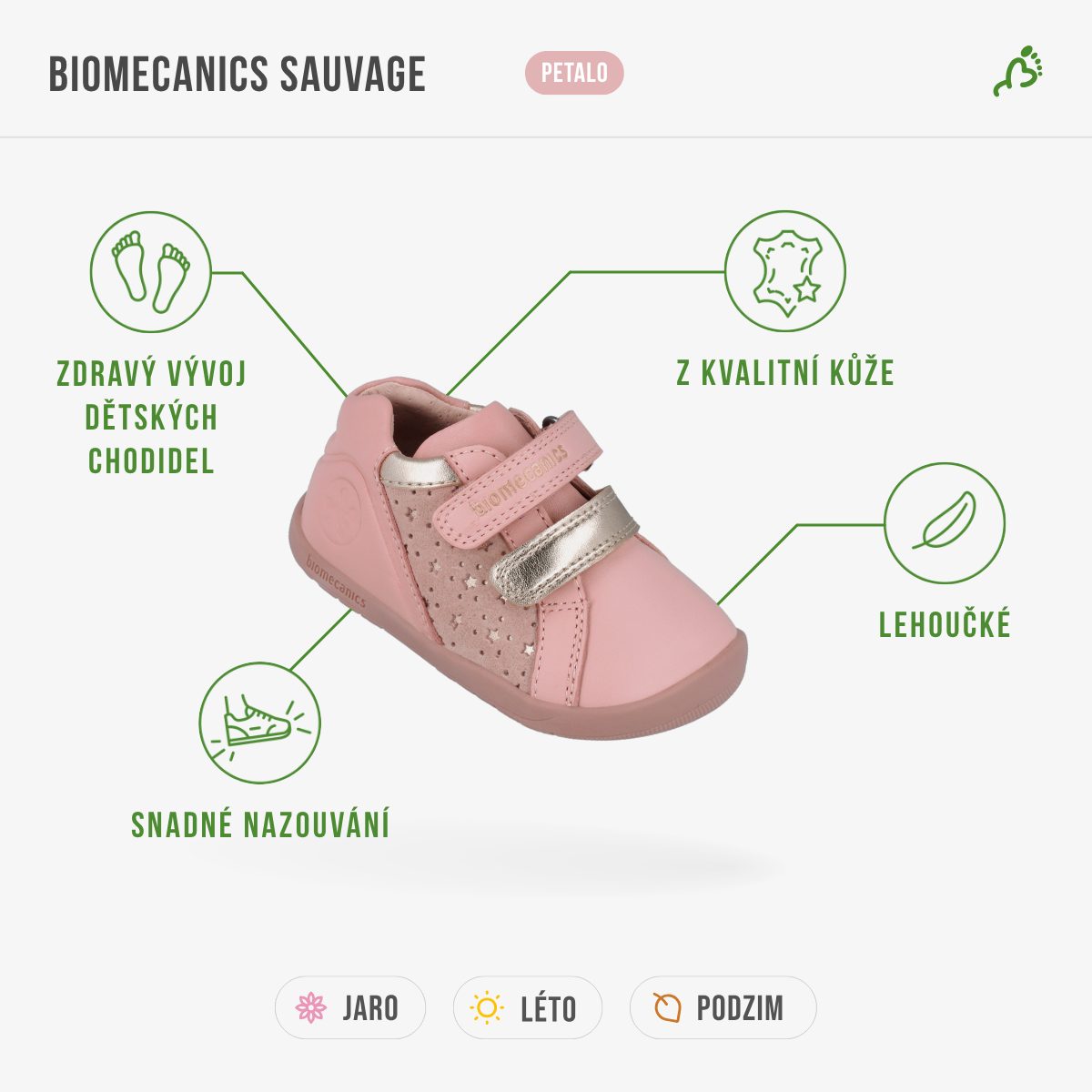 Discover the ideal first shoes for your little one. These stylish barefoot shoes from Biomecanics are designed specifically for children who are learning to walk. They are made from quality smooth leather and have a soft lining that ensures comfort all day long.
