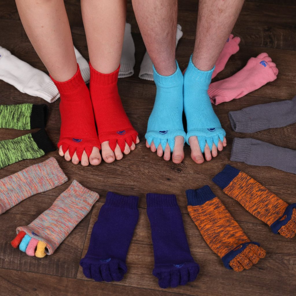 Adjustační ponožky jsou navrženy tak, aby oddělily, protáhly a uvolnily prsty, a tím minimalizovaly negativní dopady každodenní námahy na nohy v důsledku špatné, úzké a nekvalitní obuvi. Denní chůze, stání, běh nebo jiné běžné činnosti vyvolávají obrovský tlak na nohy, ale málokdo tomu věnuje větší pozornost. Obvykle se smíří s bolestí a unavenými nohami, protože to není nic, co by vyžadovalo lékařskou péči. A přitom existuje jednoduché řešení.. Adjustační ponožky jsou tou správnou volbou pro Vaše nohy!