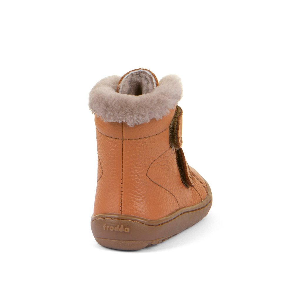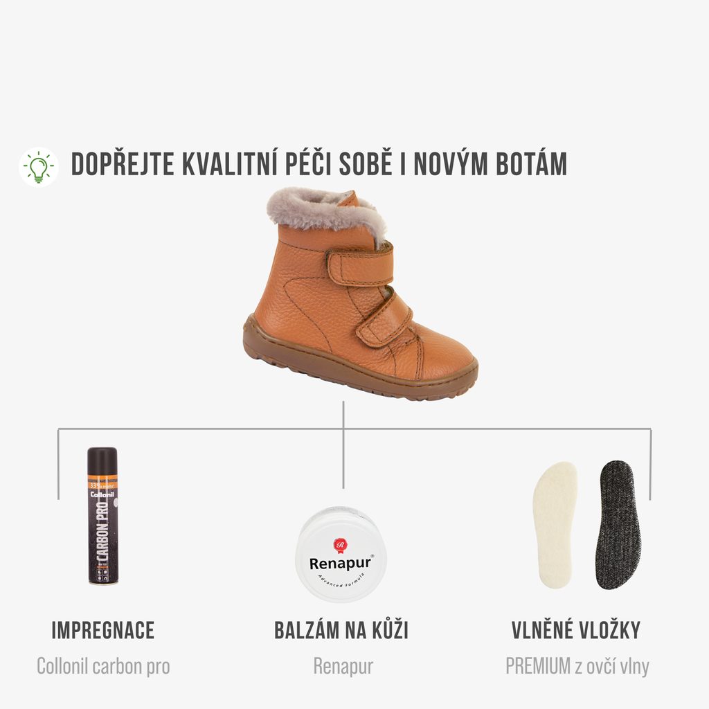 Higher winter barefoot boots made from quality smooth leather with water-repellent treatment and insulated with warm sheep wool lining will be children's excellent companion for all their adventures throughout winter. Children will have their feet pleasantly warm and dry.