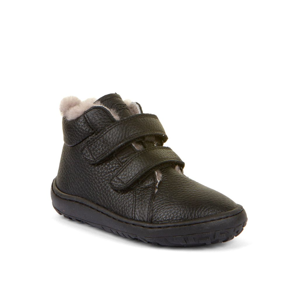 Children's winter barefoot boots made from quality smooth leather with water-repellent treatment and insulated with warm sheep fleece, will be children's excellent companion during all their winter adventures. Children will have their feet comfortably warm and dry.