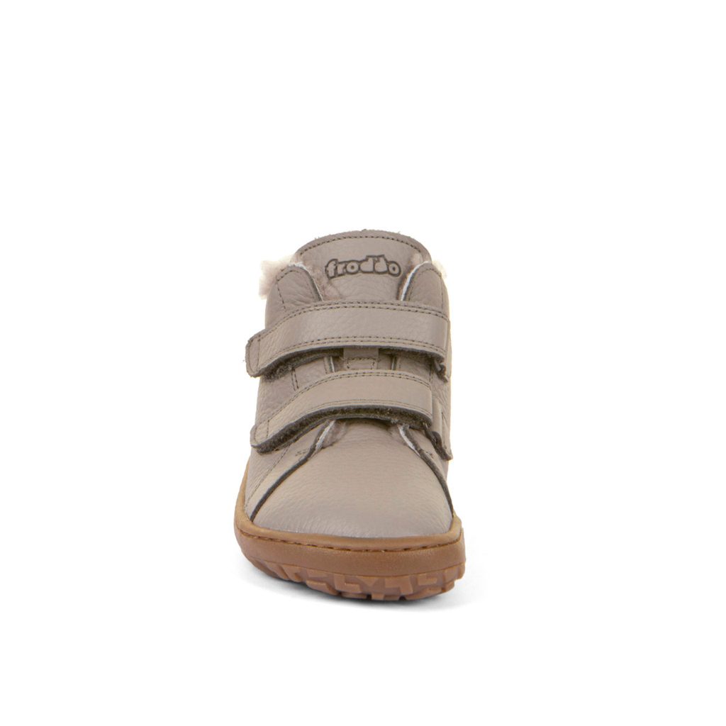 Children's winter barefoot boots made from quality smooth leather with water-repellent treatment and insulated with warm sheep fleece, will be children's excellent companion during all their winter adventures. Children will have their feet pleasantly warm and dry.